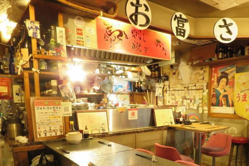 横浜・ハマ横丁で昔懐かしい雰囲気に浸れる居酒屋「お富さん」では、横浜ビールの「ラガー」が楽しめます。おつまみにピッタリのナンバーワン人気メニューは「馬刺しの盛り合わせ」。チーズを乗せてバーナーで炙った豪快な「焼きおでん」もリピーターの多い逸品です。最後はリゾットで食べることもできます。各線「横浜駅」きた西口より徒歩4分。