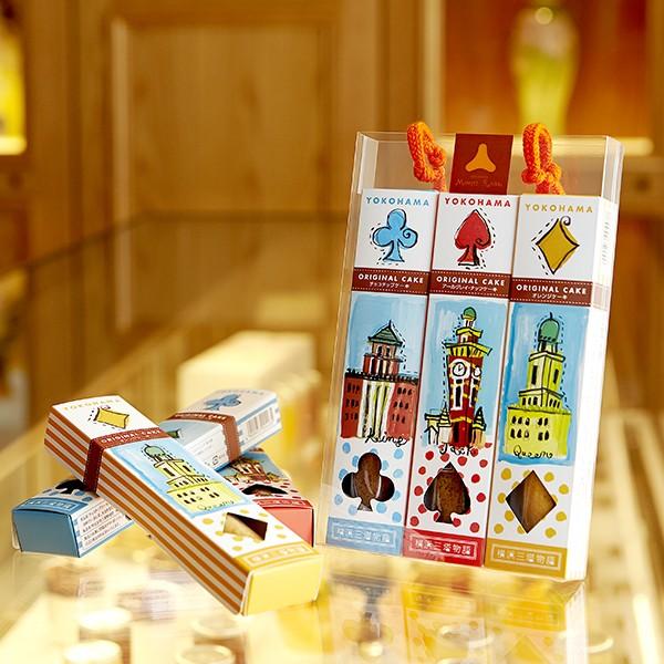 横浜港のシンボルの『三つの塔』にちなんだスティックケーキ。 ほろ苦く、香り高いチョコレートを使用したケーキ、アールグレイの茶葉とナッツを練りこんだケーキ、さらに爽やかで香り豊なオレンジ果汁を練りこんだケーキの3種類◎ 食べると「しあわせが叶う」かも・・・?