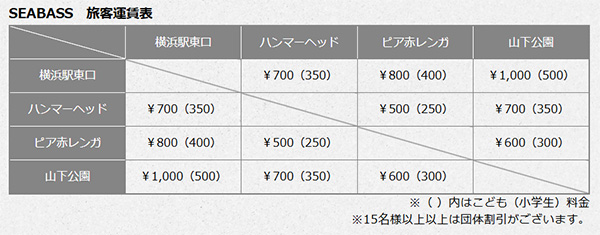 横浜駅東口・ハンマーヘッド・赤レンガ倉庫・山下公園などヨコハマの主要観光地を結ぶ海のアクセス。